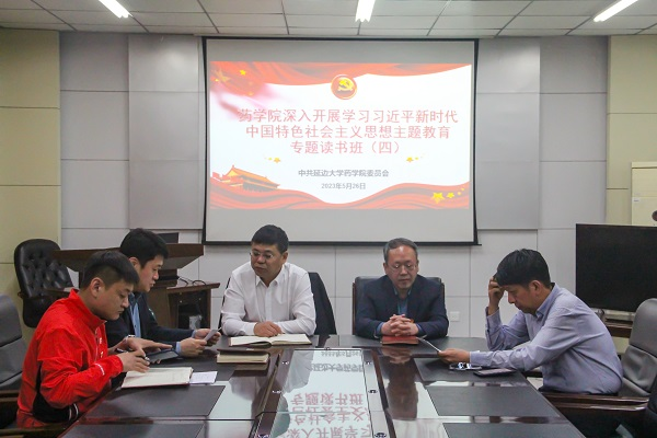 2023年5月26日上午,药学院举行学习贯彻习近平新时代中国特色社会主义思想主题教育读书班专题分享。药学院党委书记修景会主持,党委副书记赵成日以《认真学习习近平新时代中国特色社会主义思想,做到以学铸魂、以学增智、以学正风、以学促干》为题做了分享。