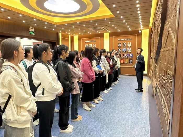 新生们井然有序的入馆后,孙笑言书记带领同学们沿着重大历史的长廊,详细地讲解了学校办学历史、人才培养、科学研究、学科建设、师资队伍等情况以及取得的各项成就。